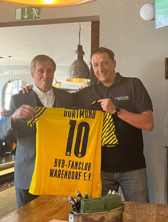 Am Samstag, den 04.06.2022, feierte der BVB Fanclub Warendorf e.V. sein 10-jähriges bestehen. Gestartet wurde in Warendorf mit dem Zug nach Dortmund, wo dann das Fußballmuseum des DfB´s besucht wurde. Danach ging es in das bekannte Restaurant "Mit Schmackes" , wo in gut gelaunter Runde gegessen und das ein oder andere Kaltgetränk genehmigt wurde. Als Ehrengast stieß Sigfried (Siggi) Held dazu, um mit uns zu dinieren und ein paar Worte zu wechseln. Als präsent brachte er uns ein für den Fanclub angefertigtes Trikot mit. Um bis dahin einen gelungen Tag abzurunden, begann nach dem Essen, per Tombola, ein Gewinnspiel mit tollen Sachpreisen vom BVB und anderen Sponsoren (intersport, Flexfit, vom Fass etc.) Gegen 21 Uhr haben wir uns auf den Heimweg nach Warendorf begeben, wo der Tag in der Frieda und ähnlichen Lokalisationen ausklingen gelassen wurde. Fazit des Tages: Wer nicht dabei war, hat was verpasst!