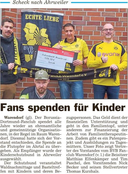 BVB-Fanclub Warendorf spendet an den Kinderschutzbund Ahrweiler