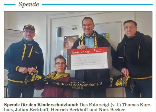 BVB-Fanclub Warendorf spendet an den Kinderschutzbund